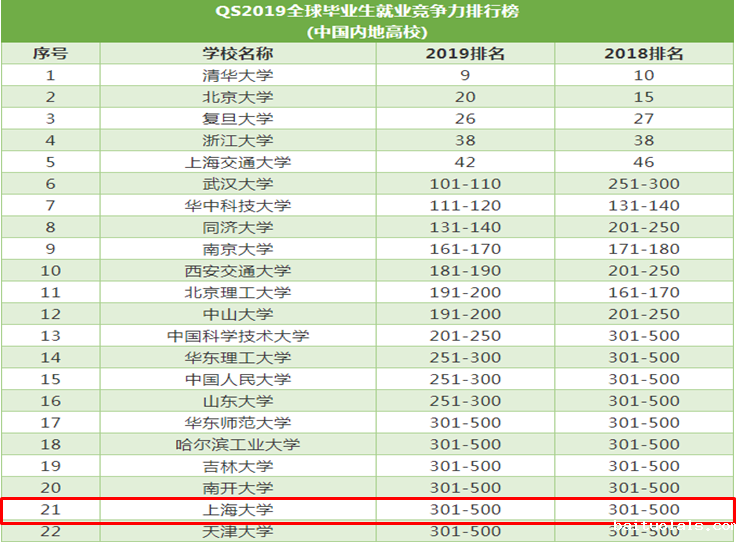 QS2019全球毕业生就业竞争力排行榜中国内地高校中betway西汉姆排名21